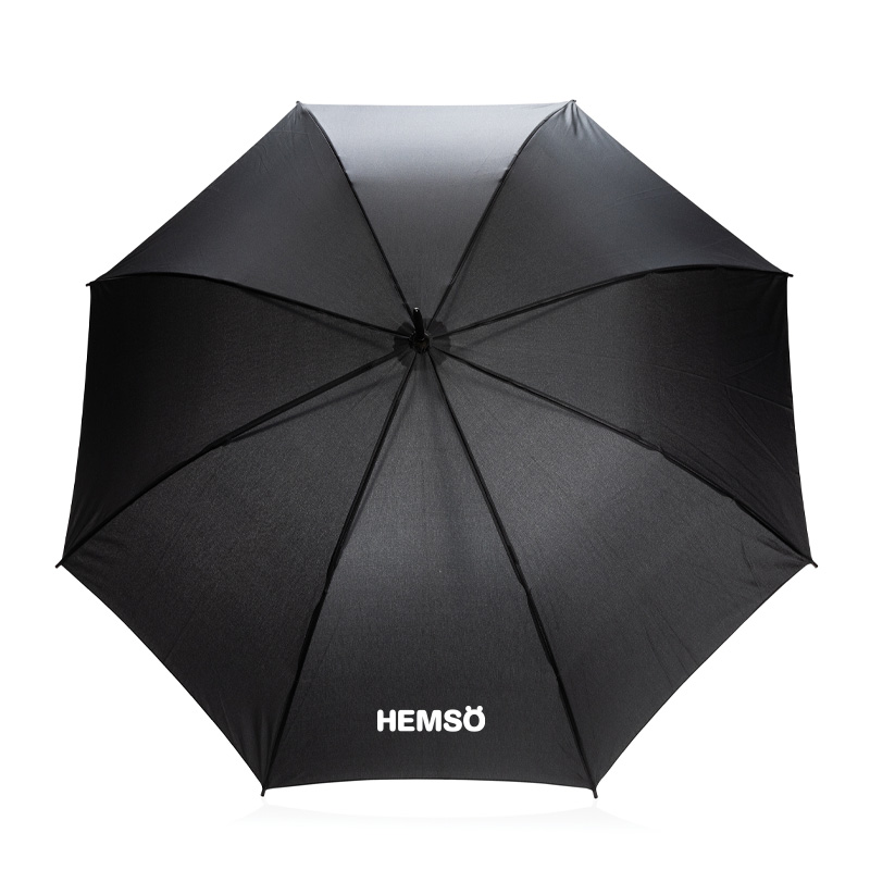 Impact AWARE™ RPET automatiskt paraply. Metallram, fiberglasribbor och handtag i PP. Paraplyets paneltyg har återanvänt 8.2 0,5L PET-flaskor och sparat 4.9 liter vatten.