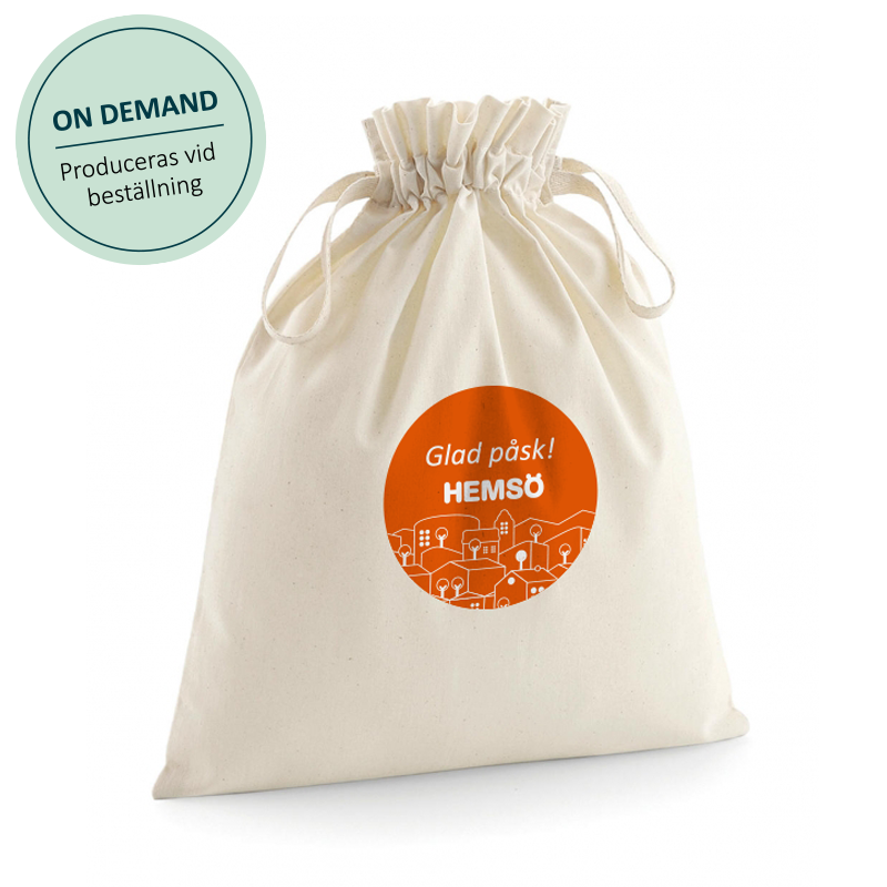 Påse tillverkad i ekologisk bomull, tryckt med hälsning.
